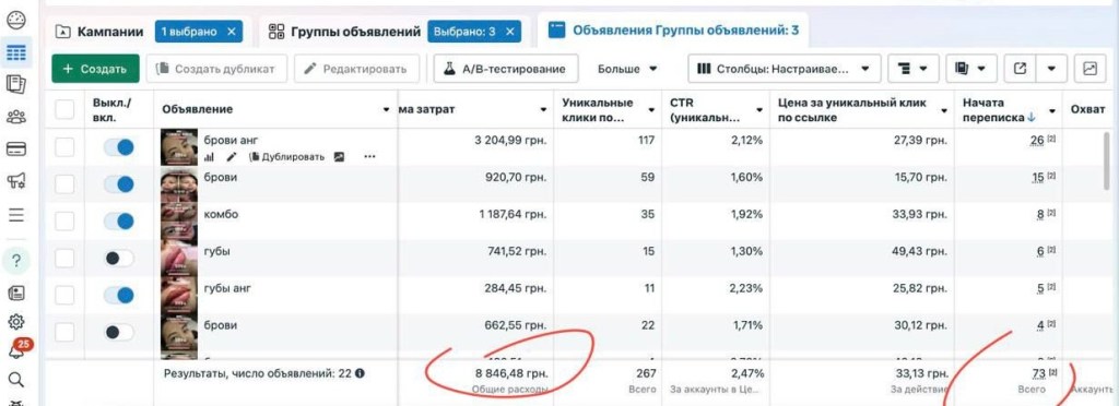 • Тестировали разные варианты креативов и текста, чтобы найти лучшие комбинации.